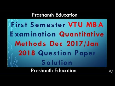 VTU First Semester MBA Quantitative method Jan 2018 Question Paper solution Part 1 - Vtu Solutions - Visvesvaraya Technological University (VTU) is one of the largest Technological Universities in India with 20 years of Tradition of excellence in Engineering ...